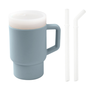 O design lembra os copos queridinhos dos adultos, mas aqui ele é todo pensado para o seu bebê: feito em silicone alimentício, leve, resistente, macio e 100% seguro. Com alças laterais e canudo, é ideal para a fase da transição.