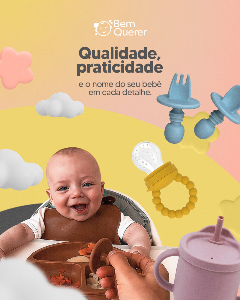 Na Bem Querer, acreditamos que as primeiras experiências do seu bebê merecem ser eternizadas. Cada utensílio é pensado com carinho, segurança e um toque único: a personalização com o nome do seu amor.